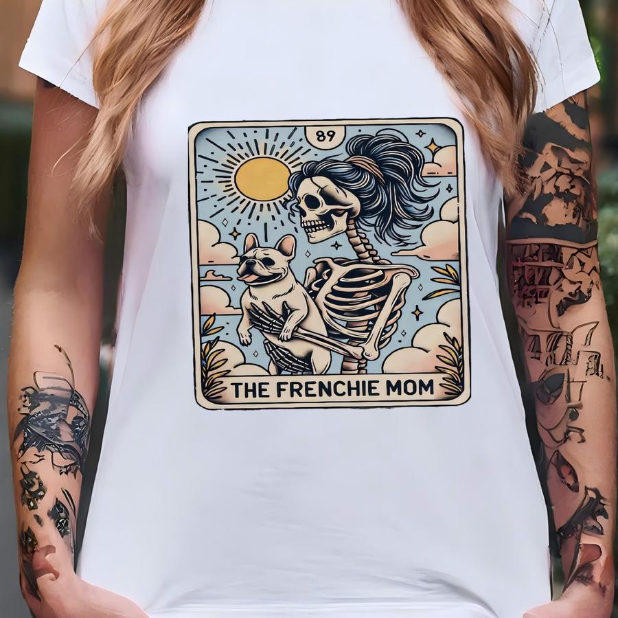 French Bulldog Shirt, ® Frenchie Dog Mom Tarot Card Hoodie, French Bulldog Skeleton Tee, Fall Halloween Dog Tee T-shirt