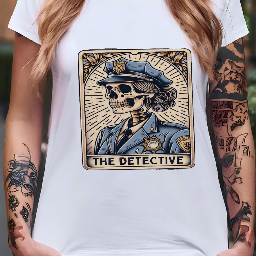 Detective Shirt, ® Female Police Officer Tarot Card Hoodie, Skeleton Detective Halloween Tee, Funny Gift For Police Officer T-shirt