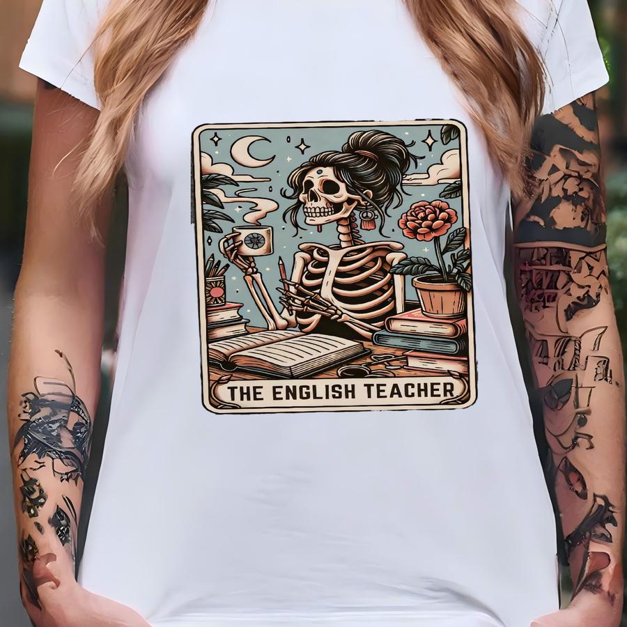 English Teacher Shirt, ® English Teacher Tarot Card Hoodie, Spooky Skeleton Halloween English Teacher Gift, Cute Funny Tee T-shirt