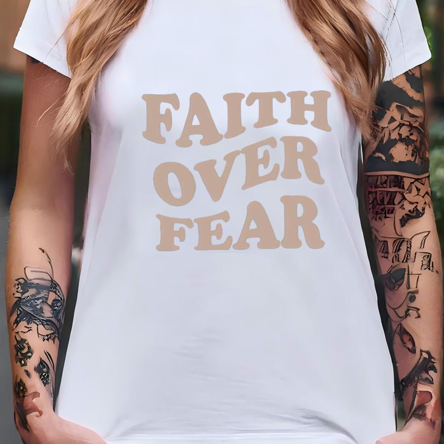 Faith Over Fear Shirt: Minimal Christian Bible Verse Tee T-shirt