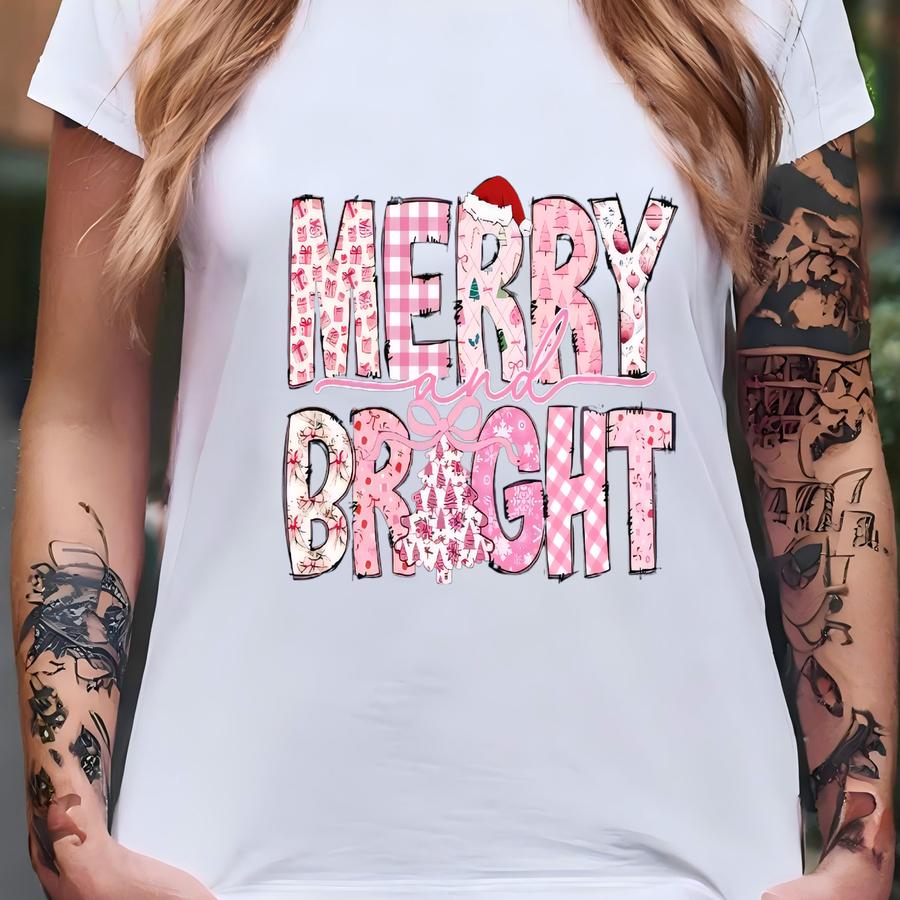 Merry And Bright Christmas Shirt: Xmas Women's Gifts T-shirt