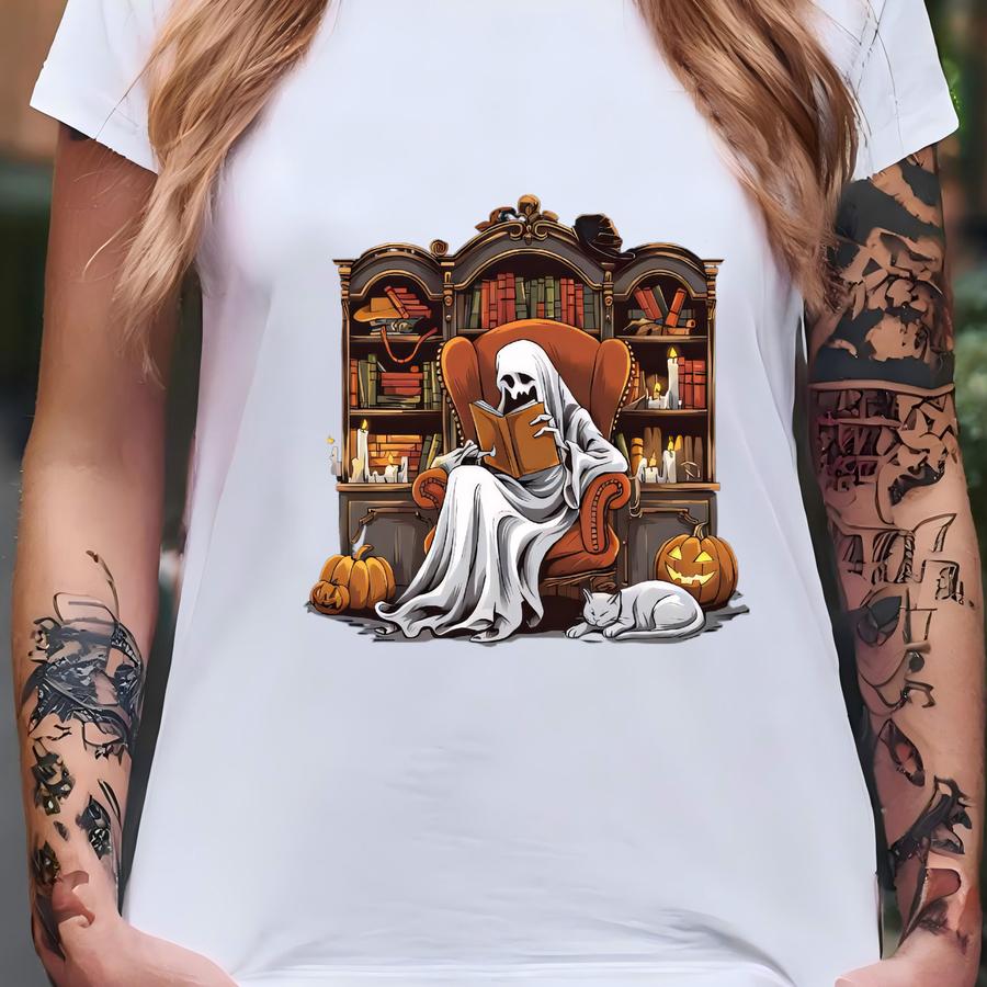 Halloween Sweatshirt, Spooky Season, Halloween Party, Ghost Reading Books Hoodie, Librarian Ghost T-shirt
