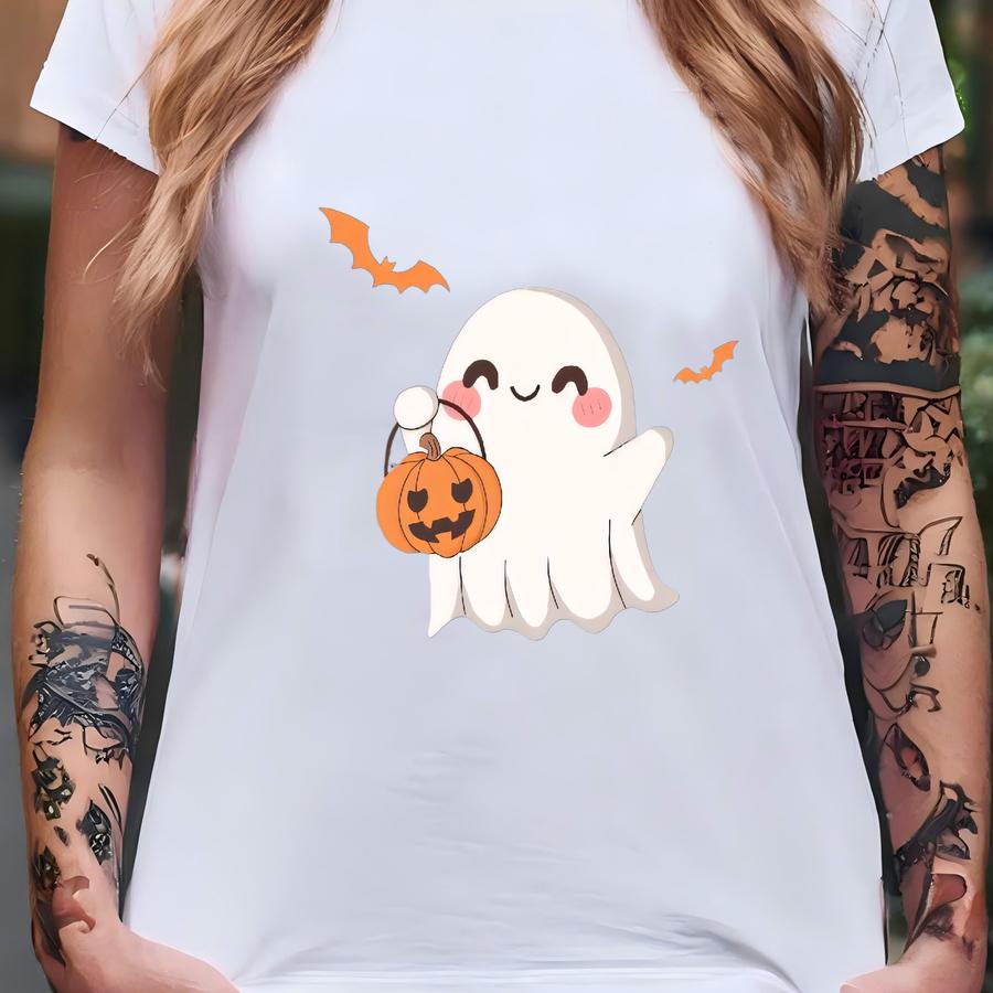 Halloween Tee With Cute Ghost, Pumpkin Lantern Shirt, Fall Trick Or Treat Tshirt, Spooky October Sweatshirt, Kawaii Look T-shirt