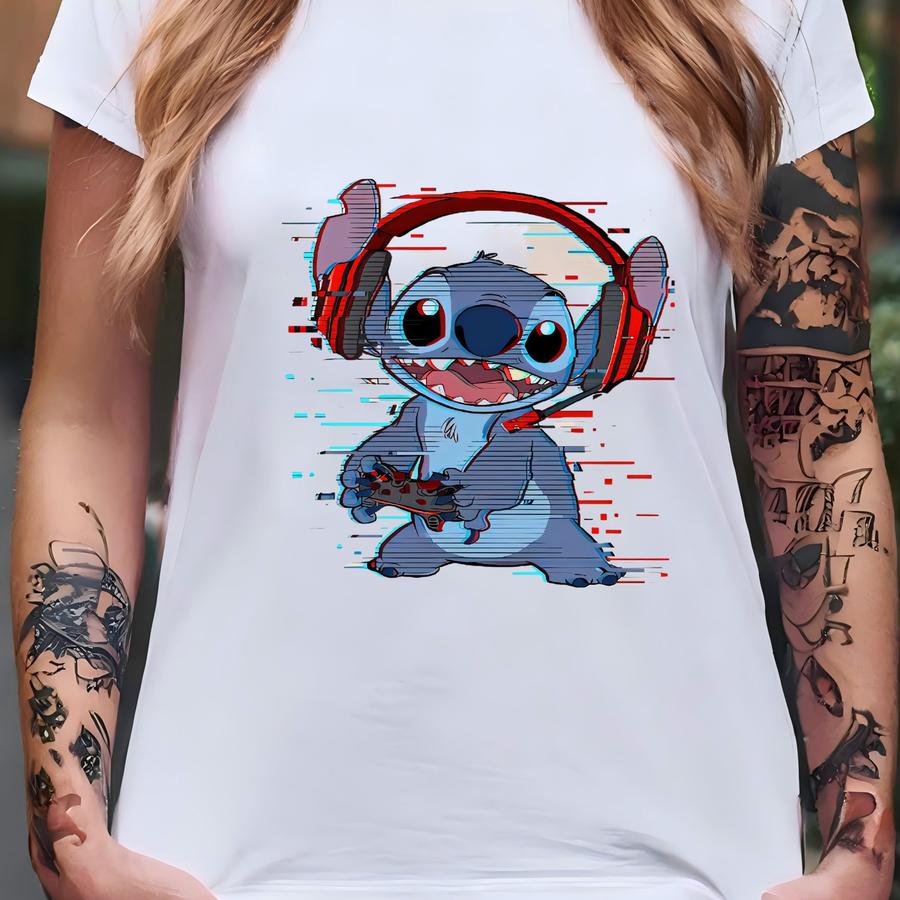Lilo Stitch Gamer Glitch Headset And Controller Hoodie, Land Family Matching Shirt, Birthday Gifts, T-shirt