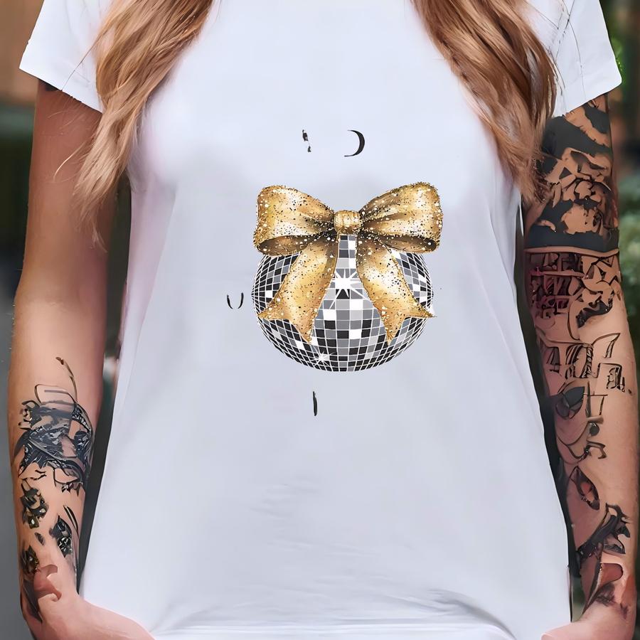 New Years Shirt, Women's New Year's Eve Crewneck, Adult Gold And Black Disco Ball Shirt, Girls Nye Party Coquette Bow, 2026 New Years Tee T-shirt