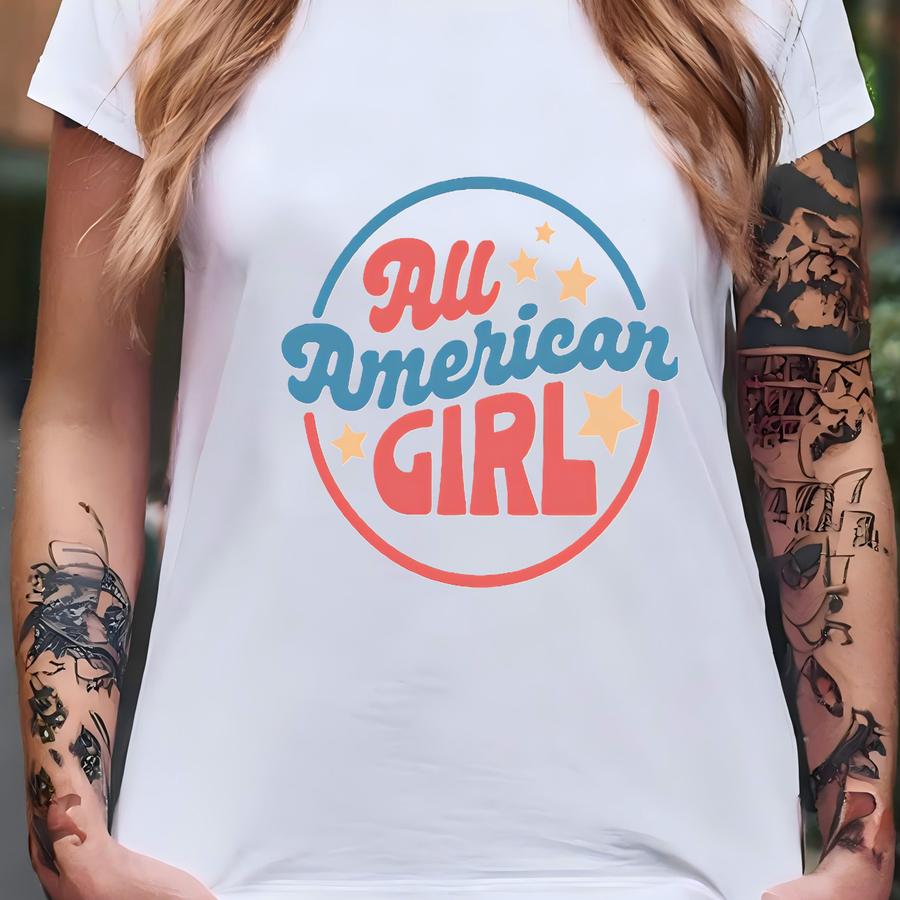 Girl 4th Of July Shirt, Girls Retro Fourth Of July Tee, Patriotic Toddler Shirt, Girl Independence Day Tee, Red White Blue T-shirt