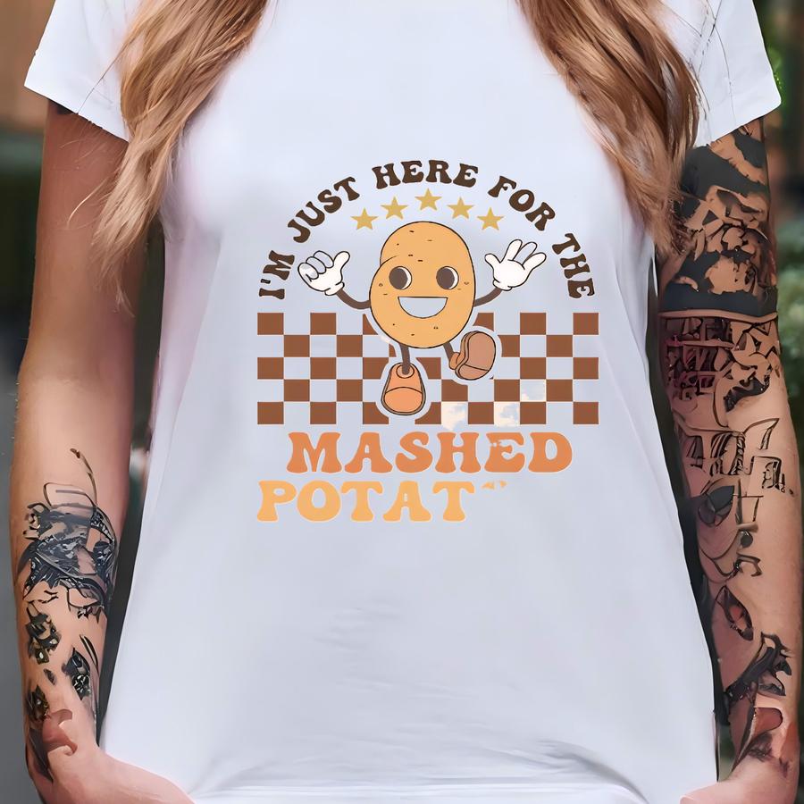 I'm Just Here For The Mashed Potatoes Kids Thanksgiving Shirt, Funny Thanksgiving Toddle Tshirt, Retro Checkered Tee, Sides Shirt, Potato T-shirt