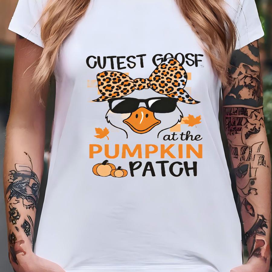 Funny Girls Fall Shirt, Cutest Goose In The Pumpkin Patch, Cute Silly Goose Toddler Tee, Halloween Tshirt, Checkered, Pumpkin Picking Patch T-shirt