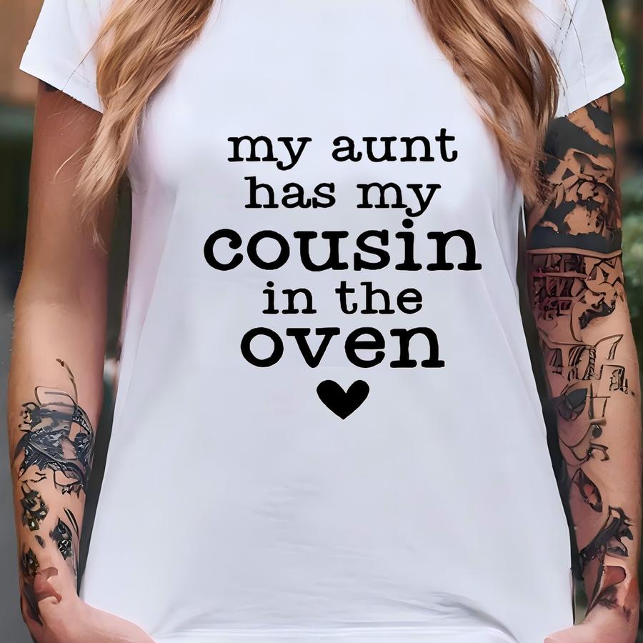 My Aunt Has My Cousin In The Oven Baby ®, Pregnancy Reveal Bodysuit, Aunt Pregnancy Announcement, Cute Auntie ®, Funny Reveal T-shirt