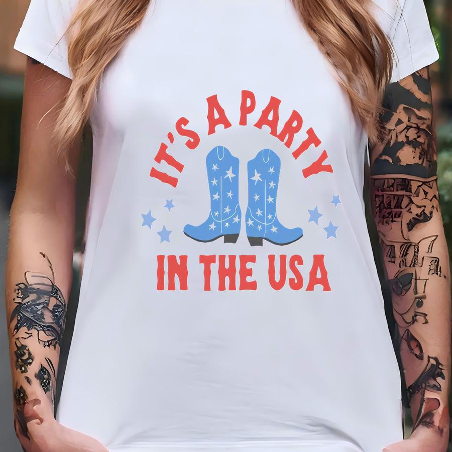 It's A Party In The Usa Kids Shirt, Cute Girls 4th Of July Toddler Tee, Independence Day Shirt, Cowboy Western Shirt, Cowgirl Boots Girl Tee T-shirt