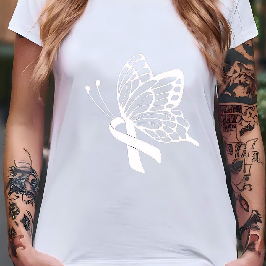 Lung Cancer Awareness Shirt, Butterfly Ribbon Shirt, Lung Cancer Survivor Shirt, White Ribbon Tee, Cancer Women Gift, Lung Warrior Hoodie T-shirt