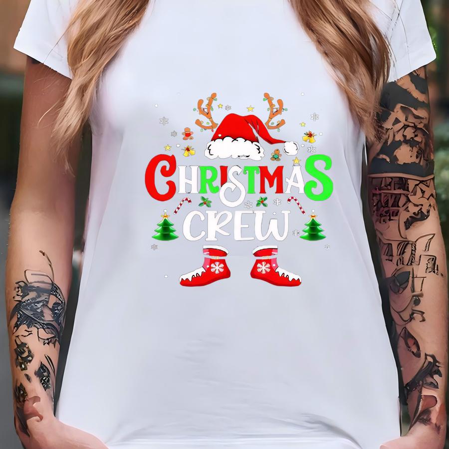 Family Christmas Crew Shirts, Matching Holiday Family Outfits, Xmas Party Gift, Cute Reindeer Santa Hat Shirt, Christmas , Kid Xmas Tee T-shirt