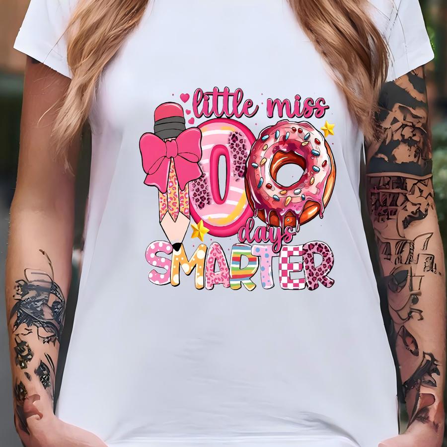 Little Miss 100 Days Smarter Shirt For Kids, 100 Days Of School Tee, Back To School Girls Gift, School Coquette Shirt, Kids School Shirts T-shirt