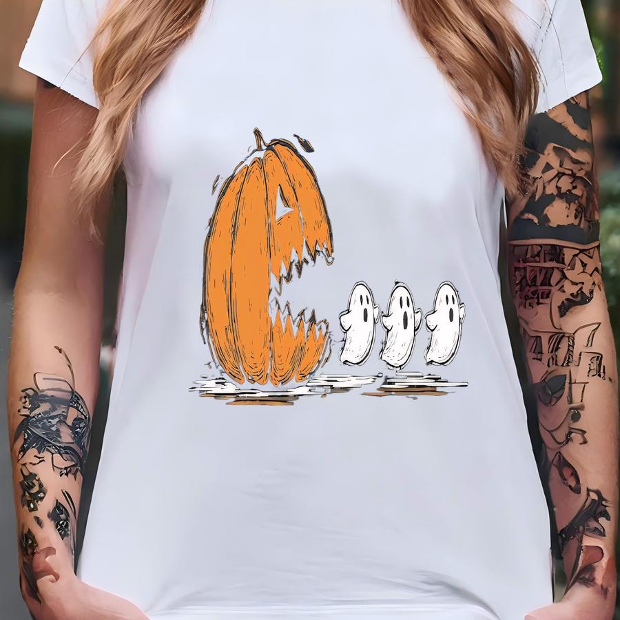 Halloween Shirt, Halloween Pumpkin Chasing Ghost Shirt, Spooky Season Tee, Pumpkin Pac Man Shirt, Gamer Halloween Gift, Halloween Ghost Tee T-shirt