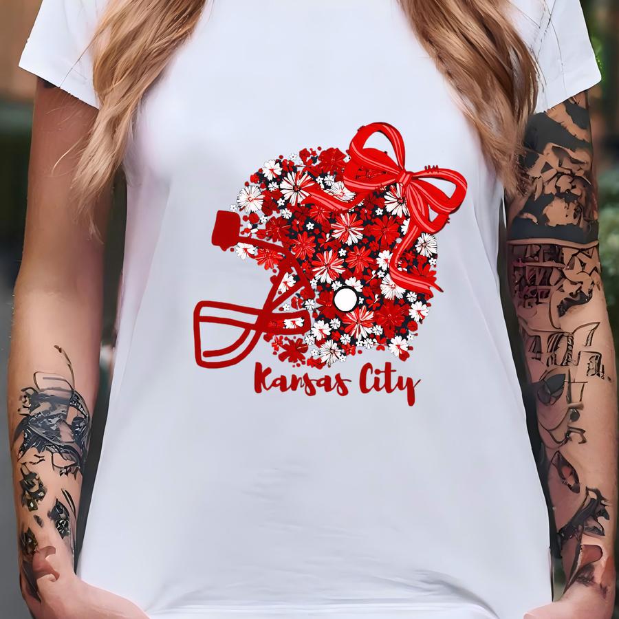 Kansas City Football Helmet | Floral Kc Design | Girls Tee | Kansas City Crewneck T-shirt