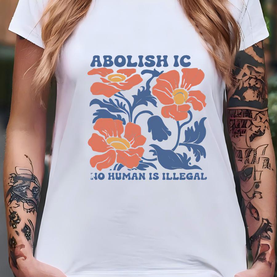 Floral Abolish Ice Human Is Illegal Shirt, Political Resistance Shirt, Anti- Activist Wear, No Human Is Illegal Top, Daca Shirt T-shirt