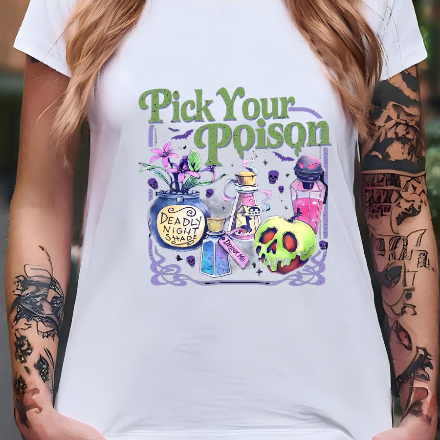 Pick Your Poison Shirt, Vintage Princess Halloween Hoodie, Retro Land Villains Cartoon Shirt, Spooky Season, Funny Poison Apple Shirt T-shirt