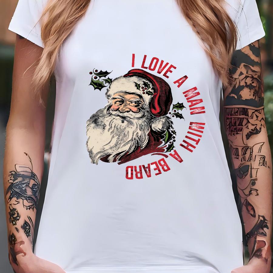 I Love A Man With A Beard Santa Christmas Sweatshirt, Funny Santa Beard Sweatshirt,cute Christmas For Women,graphic Christmas Tee,santa Xmas T-shirt