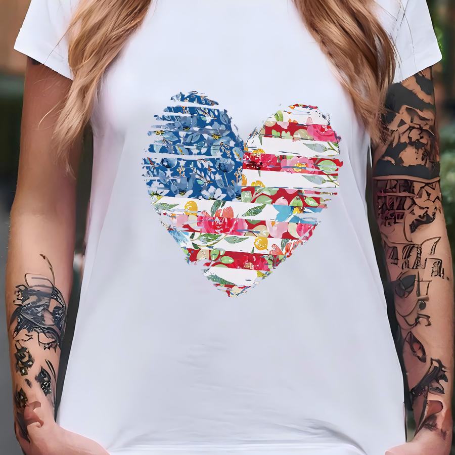 Floral Heart Usa Flag Hoodie: Patriotic 4th Of July Graphic Tee T-shirt