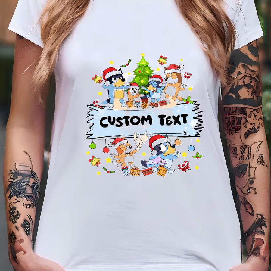 Personalized Blue Dog Family Christmas Shirt | Custom Family Name Matching Sweatshirt T-shirt