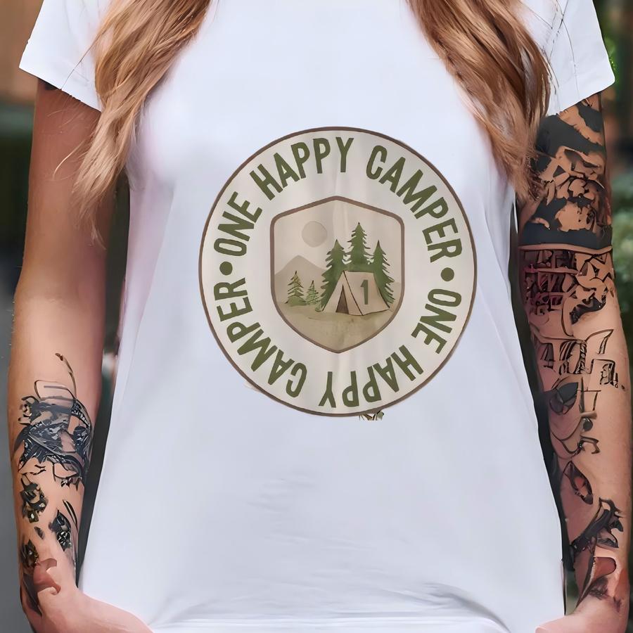 One Happy Camper First Birthday Party Backdrop | Rustic Woodland Banner | Camping Baby Boy Wall Decor | 1st Birthday Outdoor Theme Tapestry T-shirt