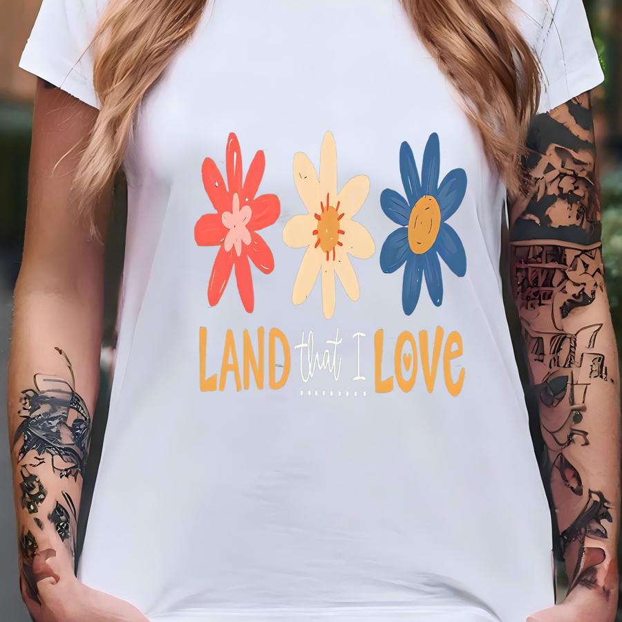 Land That I Love Shirt, Floral 4th Of July Shirt, Cute American Shirt For Woman, Patriotic Mom Shirt, American Girl Gift, Retro 4th Of July T-shirt