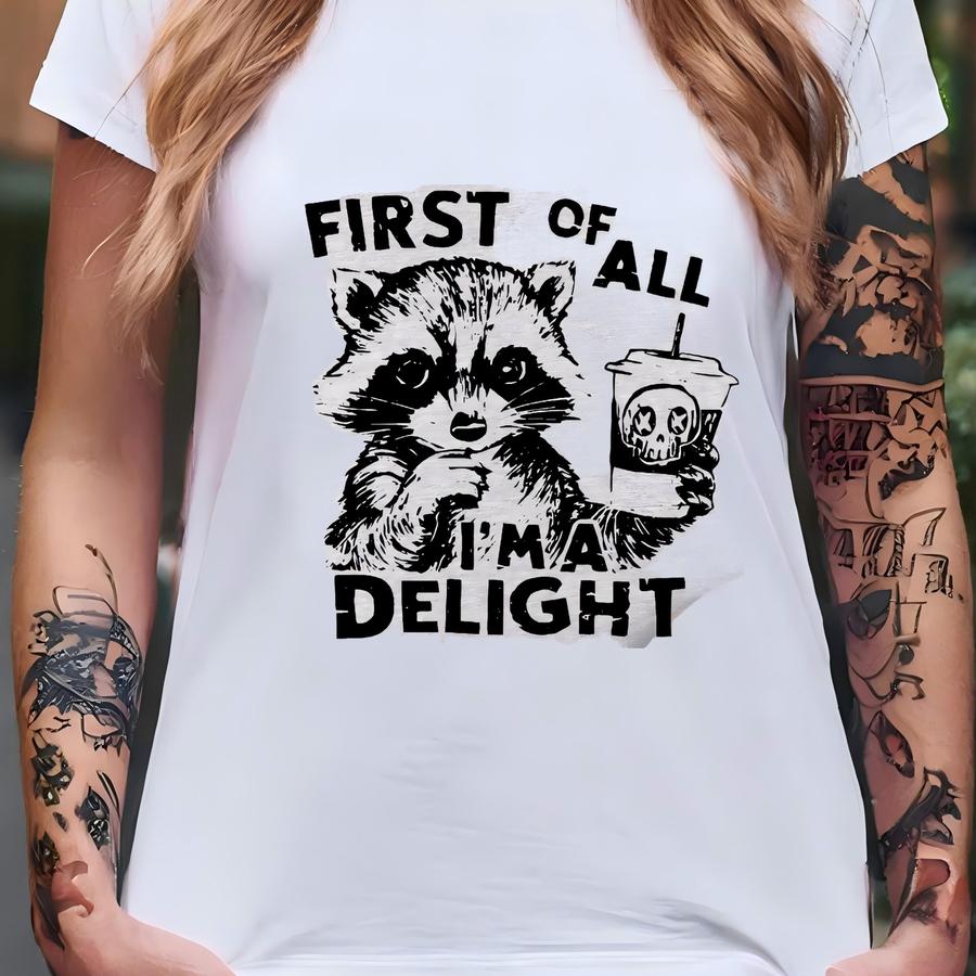 First Of All I'm A Delight Shirt, Sarcastic Shirt, Funny Raccoon Shirt, Raccoon Meme Shirt,sarcastic Sweatshirt,popular Animal,trash Raccoon T-shirt