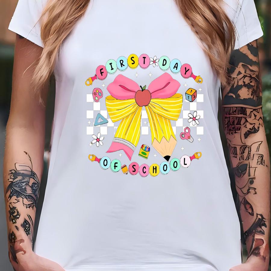 First Day Of School Shirt, Coquette Teacher Shirt, Happy 1st Day Of School, Woman Teacher Gift, Elementary Teacher Shirt, Back To School Tee T-shirt