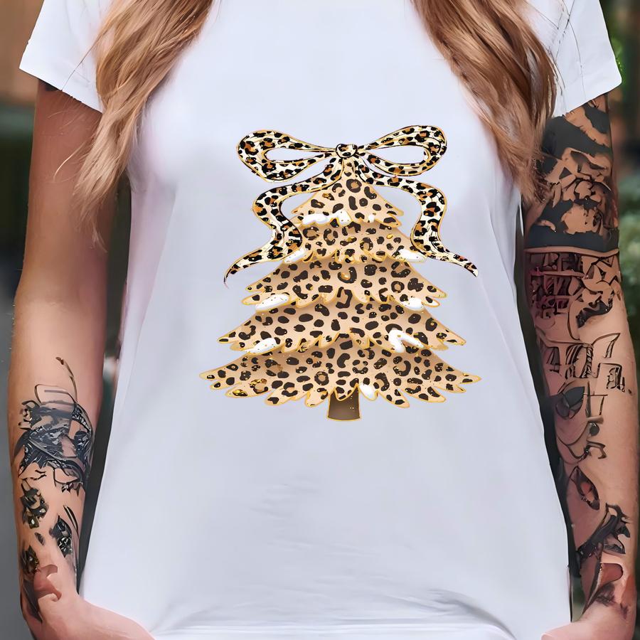 Leopard Print Christmas Tree Sweatshirt, Glam Holiday Hoodie, Cute Sparkly Xmas Outfit, Winter Pullover, Festive Animal Print Gift T-shirt