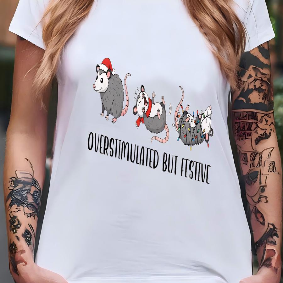 Overstimulated But Festive Possum Christmas Shirt, Funny Christmas Shirt, Possum Christmas Tee, Meme Xmas Shirt, Holiday Humor Hoodie T-shirt