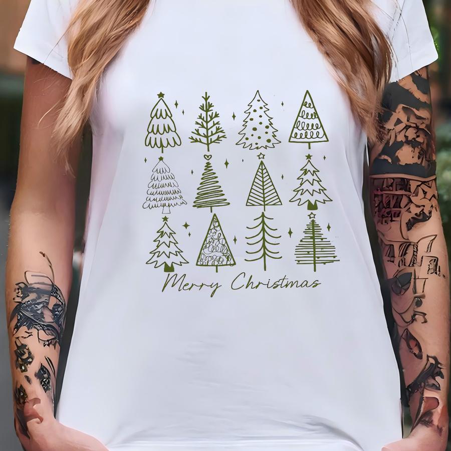 Merry Christmas Trees Sweatshirt, Merry Christmas Hoodie, Cute Women Christmas Gift, Girly Xmas Gift, Minimalist Holiday Sweatshirt T-shirt
