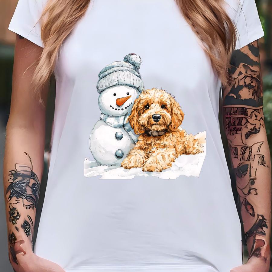 Goldendoodle And Snowman Holiday Sweatshirt, Christmas Goldendoodle Tshirt, Golden Doodle Winter Hoodie, Doodle Mom Dog Mom Gift T-shirt