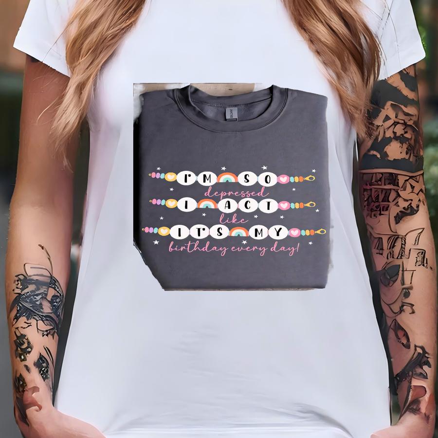 I'm So Depressed I Act Like It's My Birthday Shirt, Girls Birthday Party Shirt, Mental Health Birthday Tee, Funny Therapy Hoodie For Women T-shirt