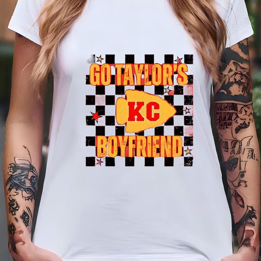 Go Taylor's Boyfriend Kansas City Football Hoodie, Kansas City Three Peat Gift For Mom, Kc Shirt, Kc Game Day Hoodie, Kc Football Women T-shirt