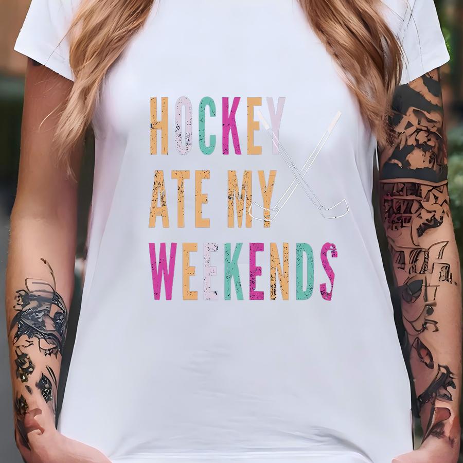 Funny Hockey Sweatshirt Hockey Ate My Weekends Sweater Neon Grunge Hockey Pullover Hockey Mom Sweater Gift For Ice Hockey Mama T-shirt