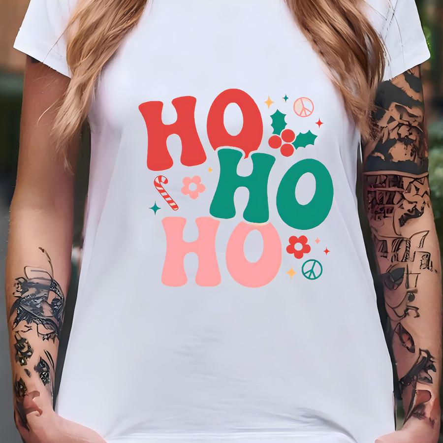 Ho Ho Ho Christmas Sweatshirt | Retro Groovy Holiday Crewneck | Colorful Christmas Pullover | Cozy Holiday Gift T-shirt