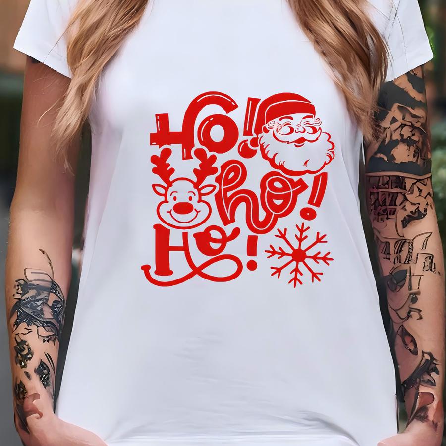 Ho Ho Ho Christmas Sweatshirt | Retro Santa Reindeer Crewneck | Cute Holiday Pullover | Cozy Christmas Gift T-shirt