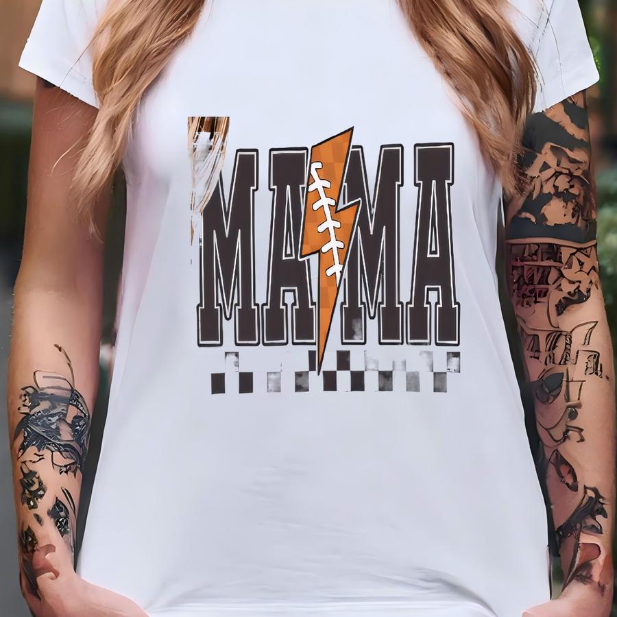 Football Mama Shirt | Retro Lightning Bolt Checkered Tee | Game Day Mom Hoodie T-shirt