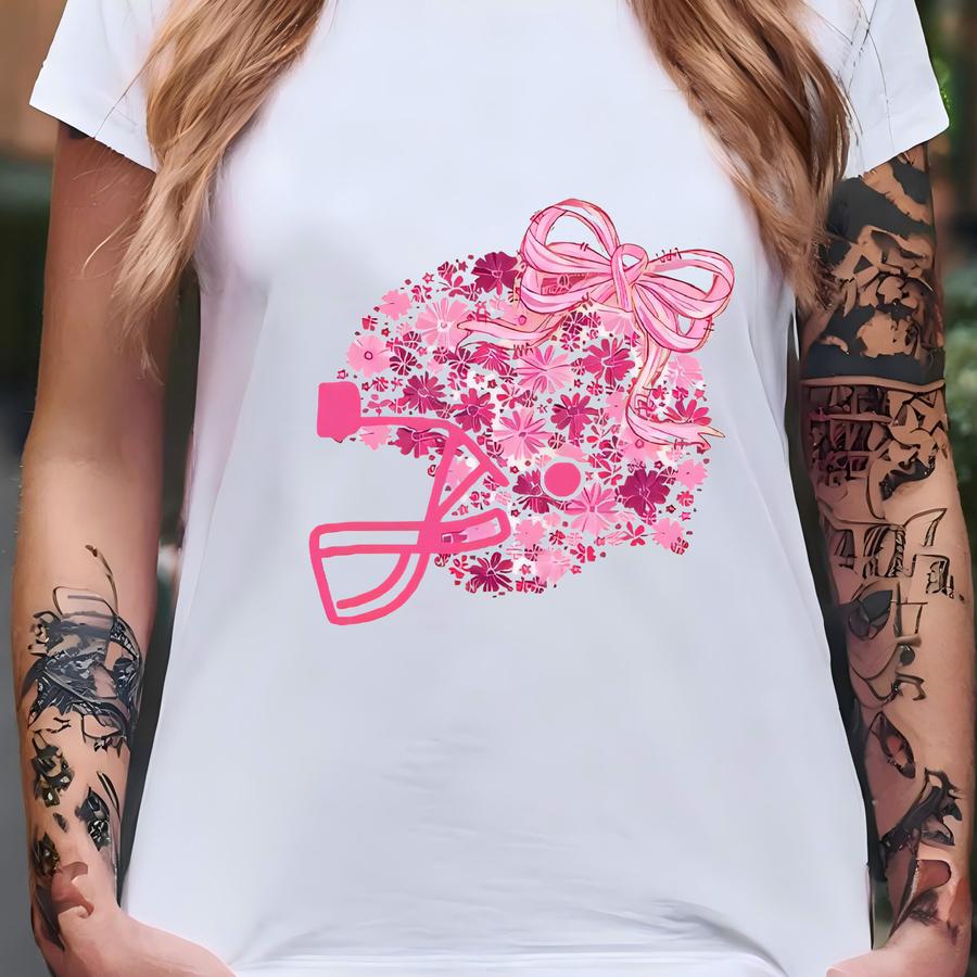 Floral Pink Ribbon Football Shirt | Breast Cancer Awareness Tee | Game Day Support Hoodie For Women T-shirt