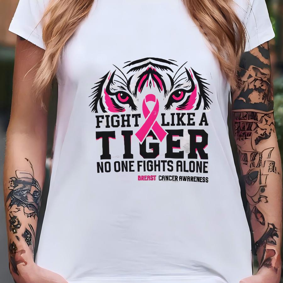 Fight Like A Tiger Breast Cancer Awareness Shirt | Pink Ribbon Tee | No One Fights Alone Graphic Top T-shirt