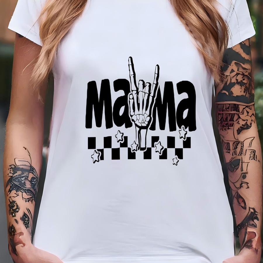 Mama Trucker Hat | Skeleton Rock Hand Mesh | Cool Edgy Mom Hat T-shirt