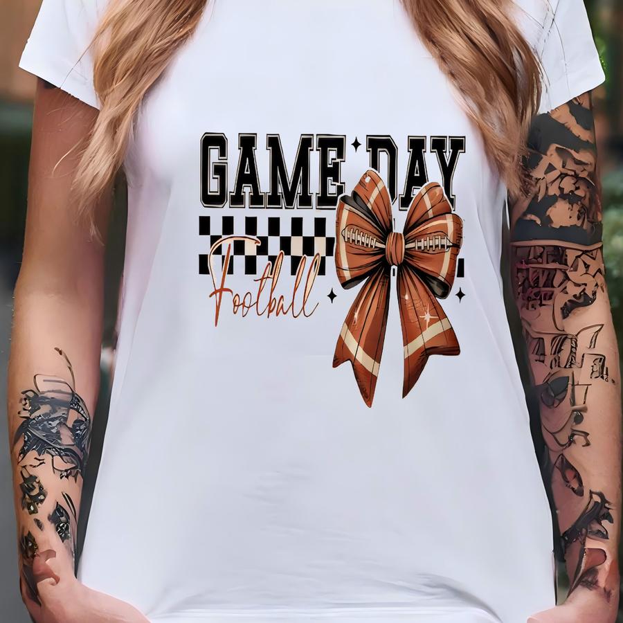 Natural Game Day Shirt – Football Bow Graphic Tee T-shirt