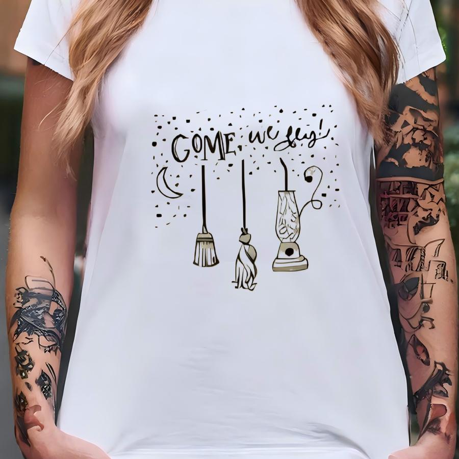 Matching Mommy And Me Halloween Shirts: Witch Broom Design T-shirt