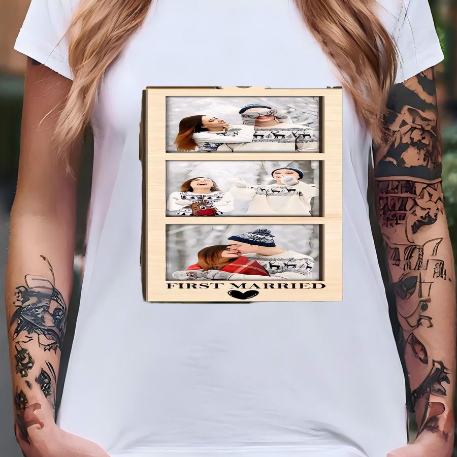 Personalized Photo Strip Ornament,custom Photo Strip Ornament, Family Photo Frame Ornament, Christmas Decor,first Married Christmas Ornament T-shirt