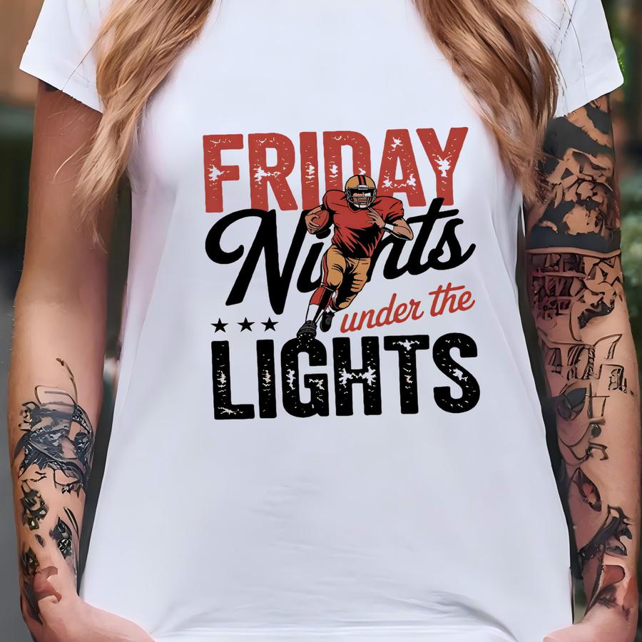 Friday Nights Under The Lights Shirt, American Football Lover Tshirt, Football Season Tee, Funny Football Shirt Women. T-shirt