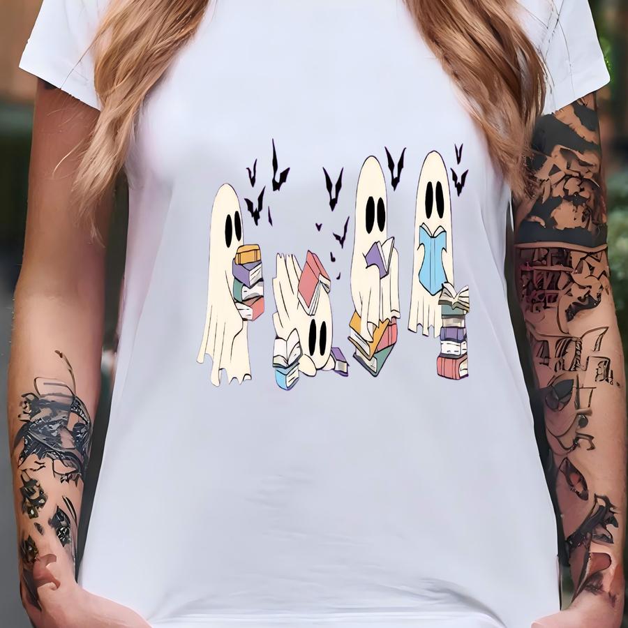 Ghost Reading Books Shirt, Bookish Halloween Tshirt, Teacher Halloween Gift, Halloween Ghost Books, Spooky Book Lover Tee, Read More Books. T-shirt