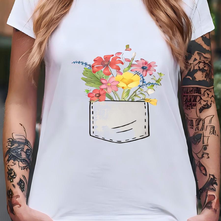 Pocket Flower Sweatshirt, Flower Sweatshirt, Gift For Women, Flower Girl Gift, Mothers Day Gift, Flower Hoodie, Girlfriend Gift, Mom Gifts T-shirt