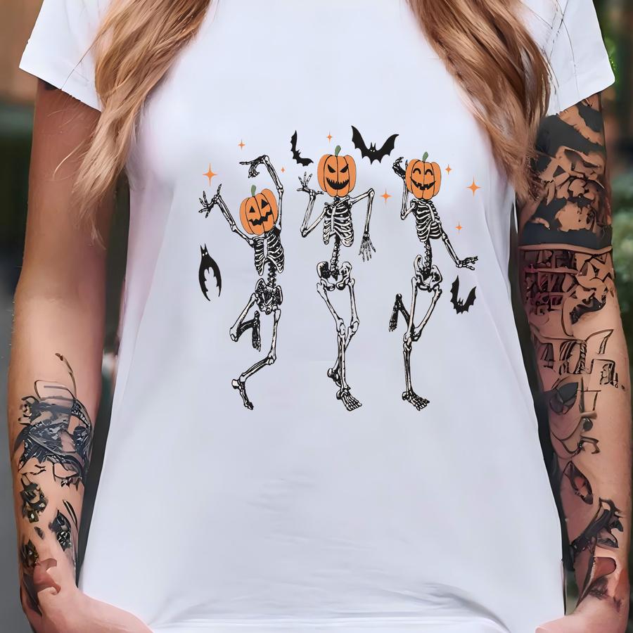 Dancing Skeleton Sweatshirt, Halloween Sweatshirt, Skeleton Sweatshirt, Halloween Gift, Pumpkin Skeleton Hoodie, Pumpkin Sweatshirt T-shirt