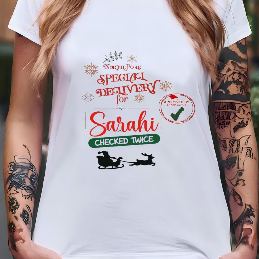 Personalized 6 Oz. Cotton Santa Sack – 14''×18″ Drawstring Gift With Custom Name T-shirt