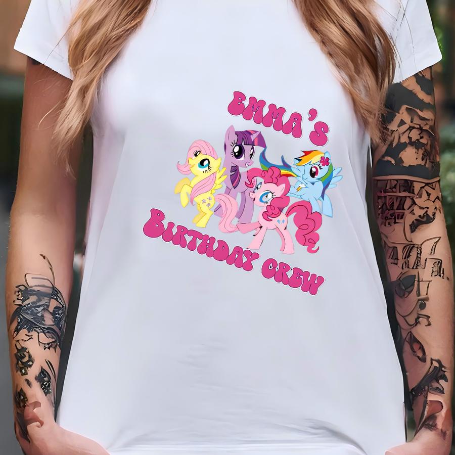 Little Pony Birthday Shirt Custom Name And Age Tee – Birthday Girl Birthday Crew Matching Family Shirts – My Little Pony Party Gift Mlp T-shirt